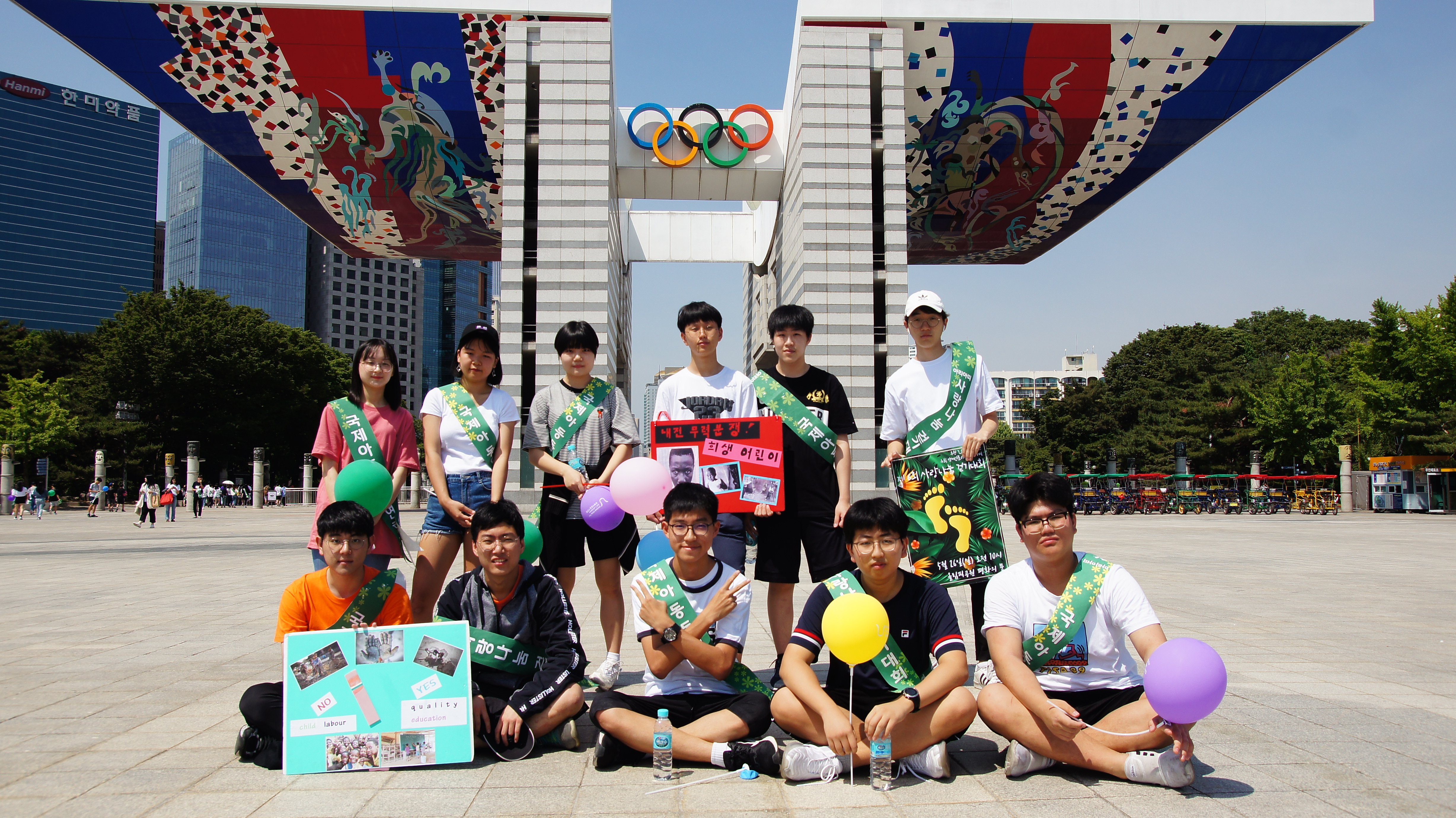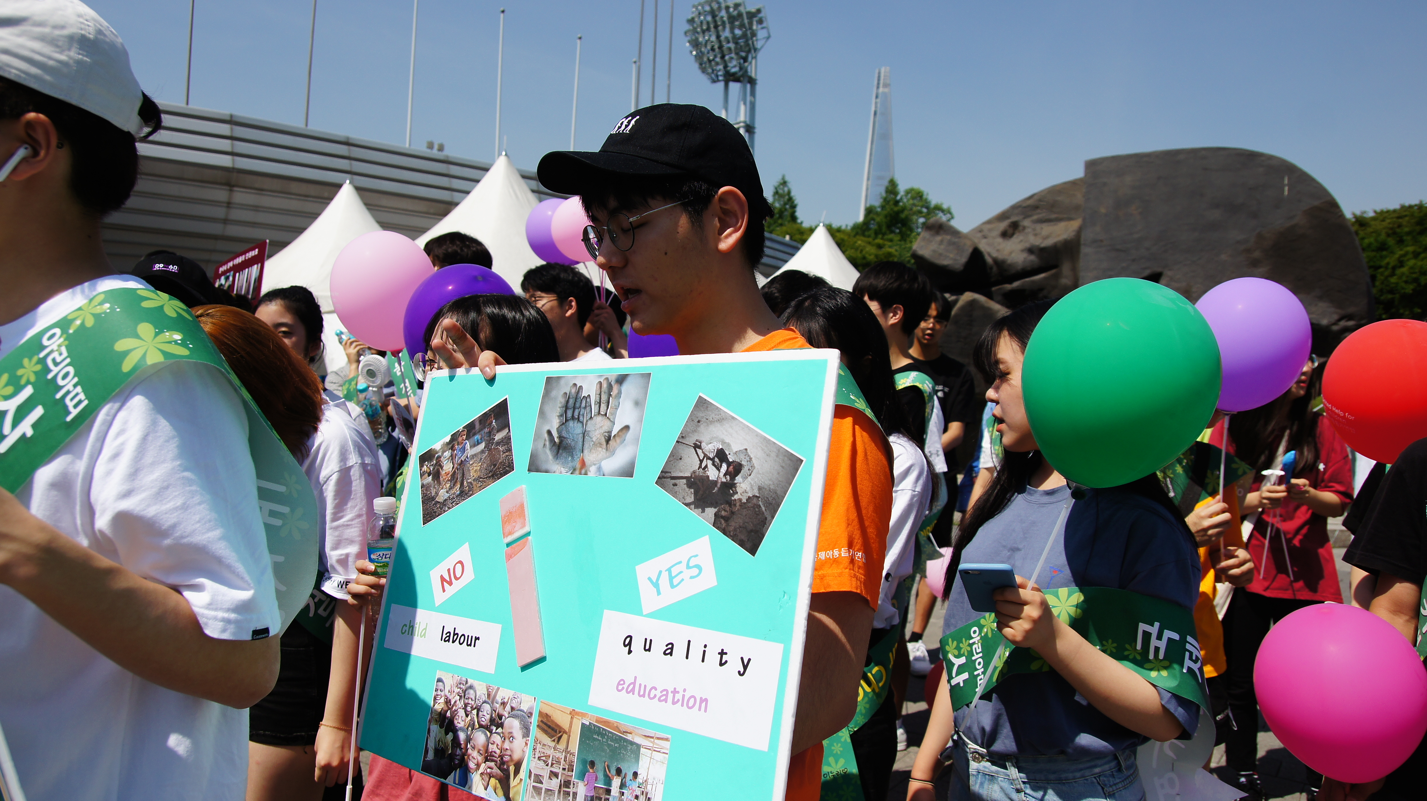 올해에도 많은 학생들이 참여해서 전세계 아이들, 특히 인권 사각지대에 놓은 아이들의 인권보호를 위해 구호를 외치고 시민들의 참여를 독려했습니다.
