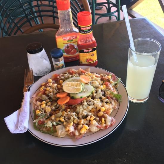 그렇게 한참을 있다보니 배가 고파져서 야채피자를 시켰는데요, 위 사진과 같이 토핑이 엄청 들어간 피자가 나왔어요!