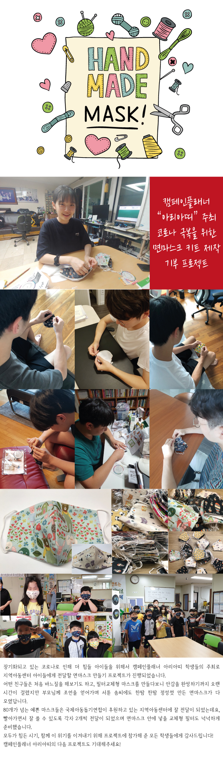 | [캠페인플래너 아리아띠 주최] 면마스크 키트 제작 기부 프로젝트 (0) | 2020.06.04 |