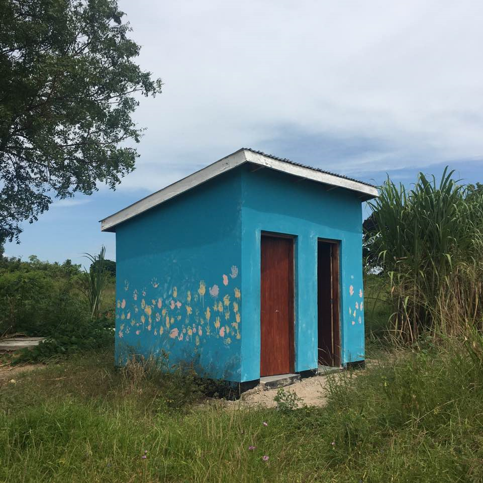 오지마을에는 화장실이라고 부를만한 시설을 갖춘 곳이 거의 없고 대부분 공용 화장실은 바닥을 2m 가량 파서 그 위에 굵은 나무와 흙으로 덮어 바닥을 다진 후 중간에 작은 구멍을 낸 것이 끝입니다. 천장은 없으며 바나나잎을 얼기설기 엮어 땅에 꽂아두었기 때문에 바람이 불거나 비가 오면 금세 허물어지고 벌레가 생겨 비위생적인 환경에 노출되고 있었습니다.