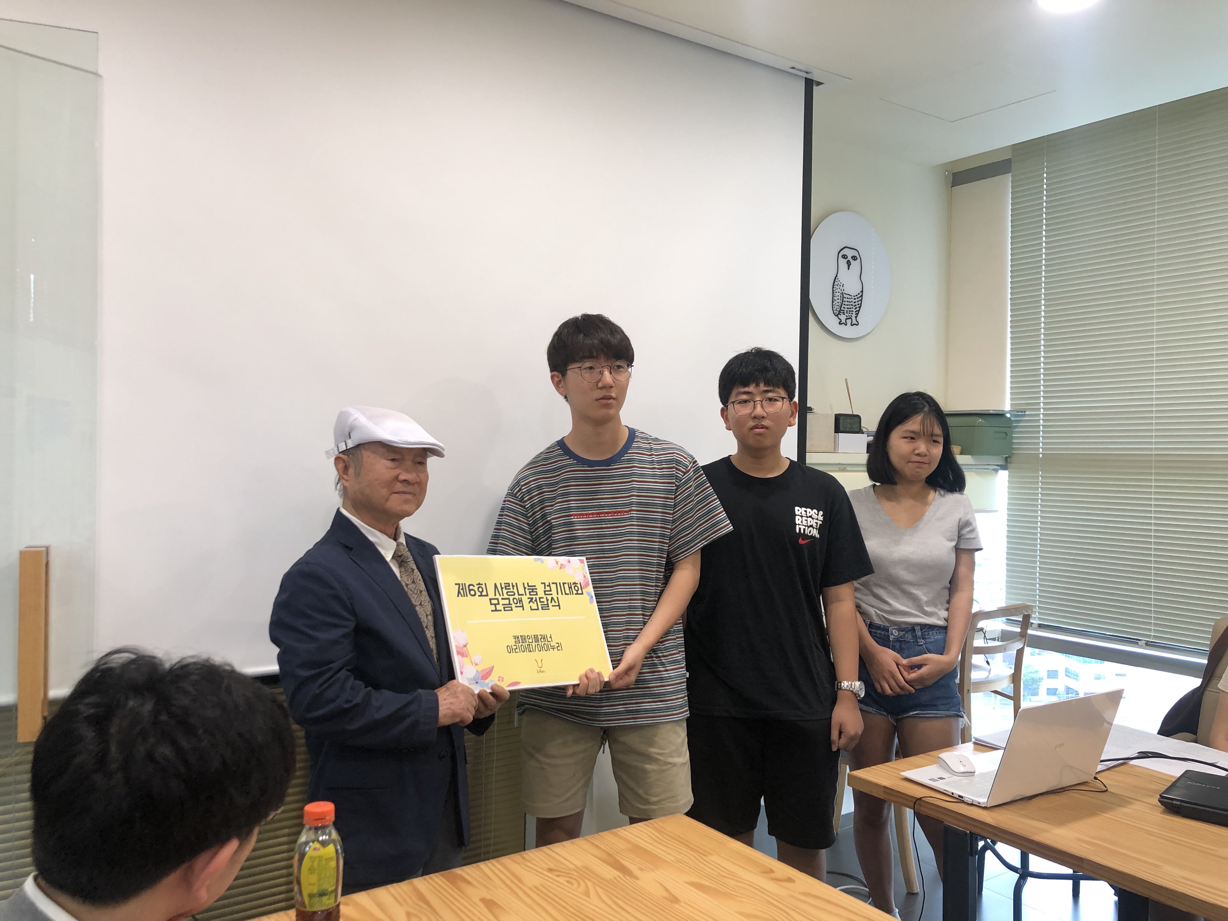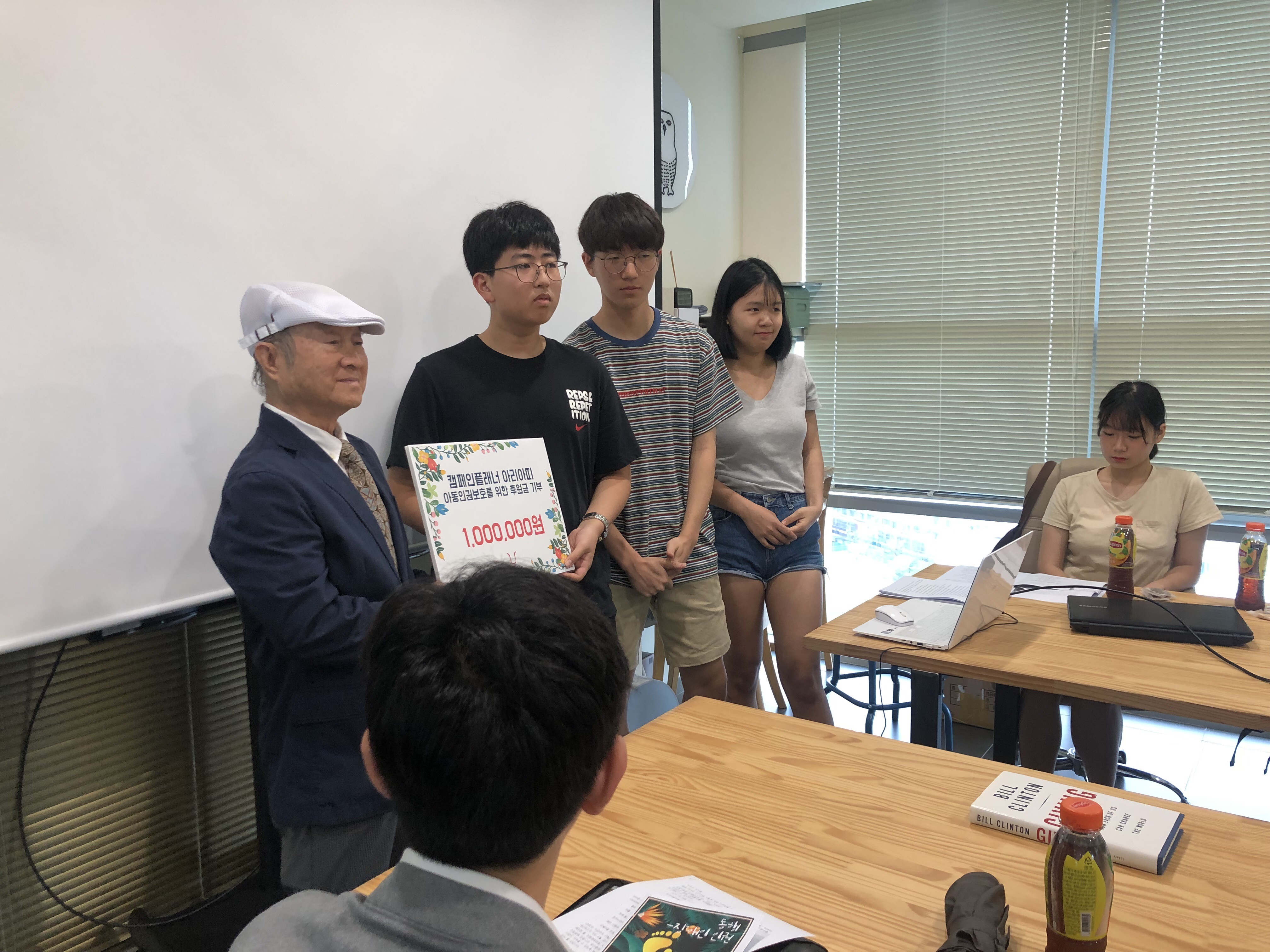포럼의 시작은 계충무 고문님의 격려사로 시작되었는데요, 오랜 기간 저희 국제아동돕기연합을 통해 많은 아이들을 돕는데 큰 힘을 보태준 캠페인플래너 학생들에게 감사인사도 함께 전해주셨습니다. 또한 본격적인 인권포럼 개최 전에 지난 사랑나눔 걷기대회 때 모아진 후원금과 아동인권보호를 위한 후원금 전달식이 있었습니다.