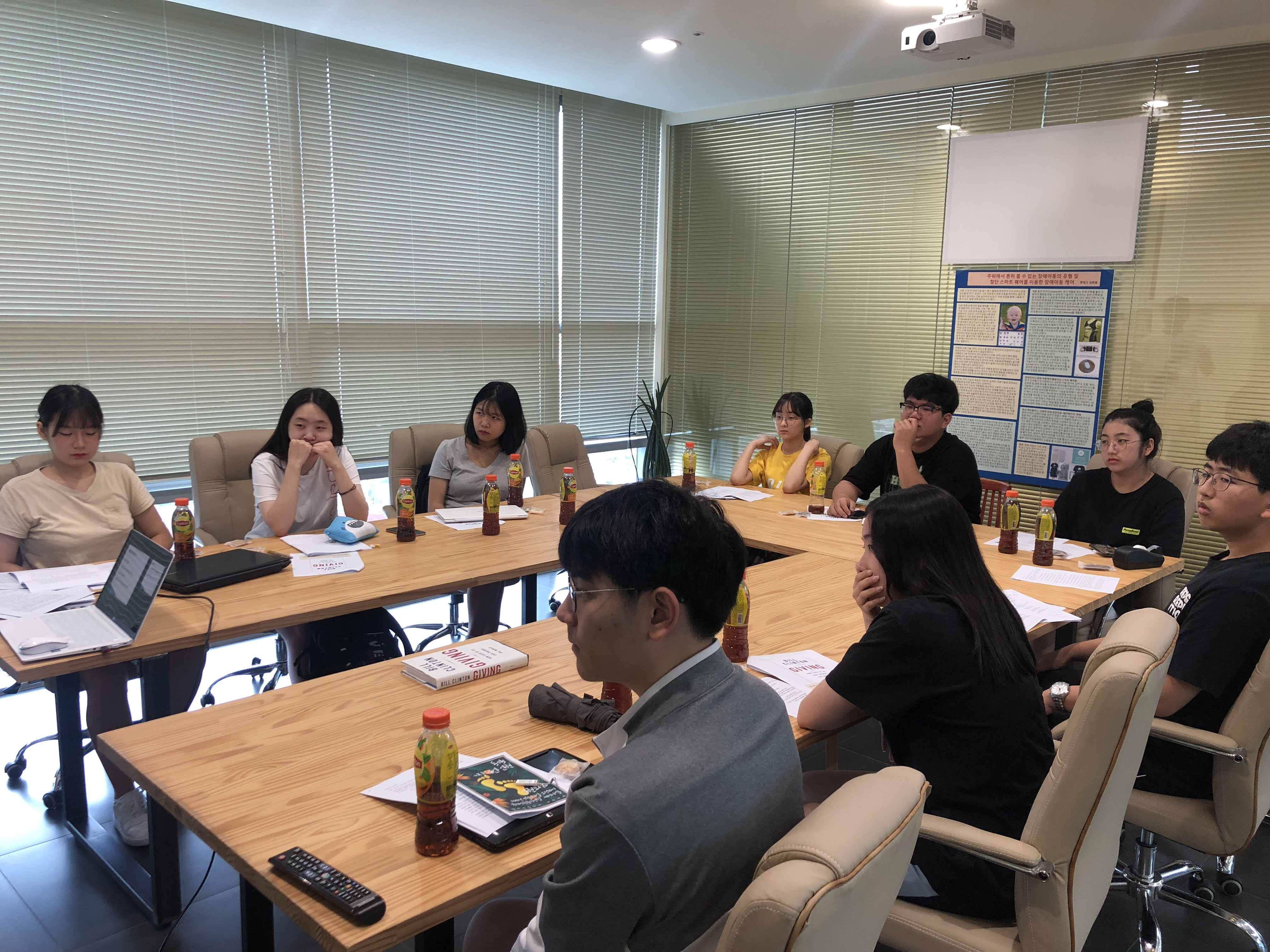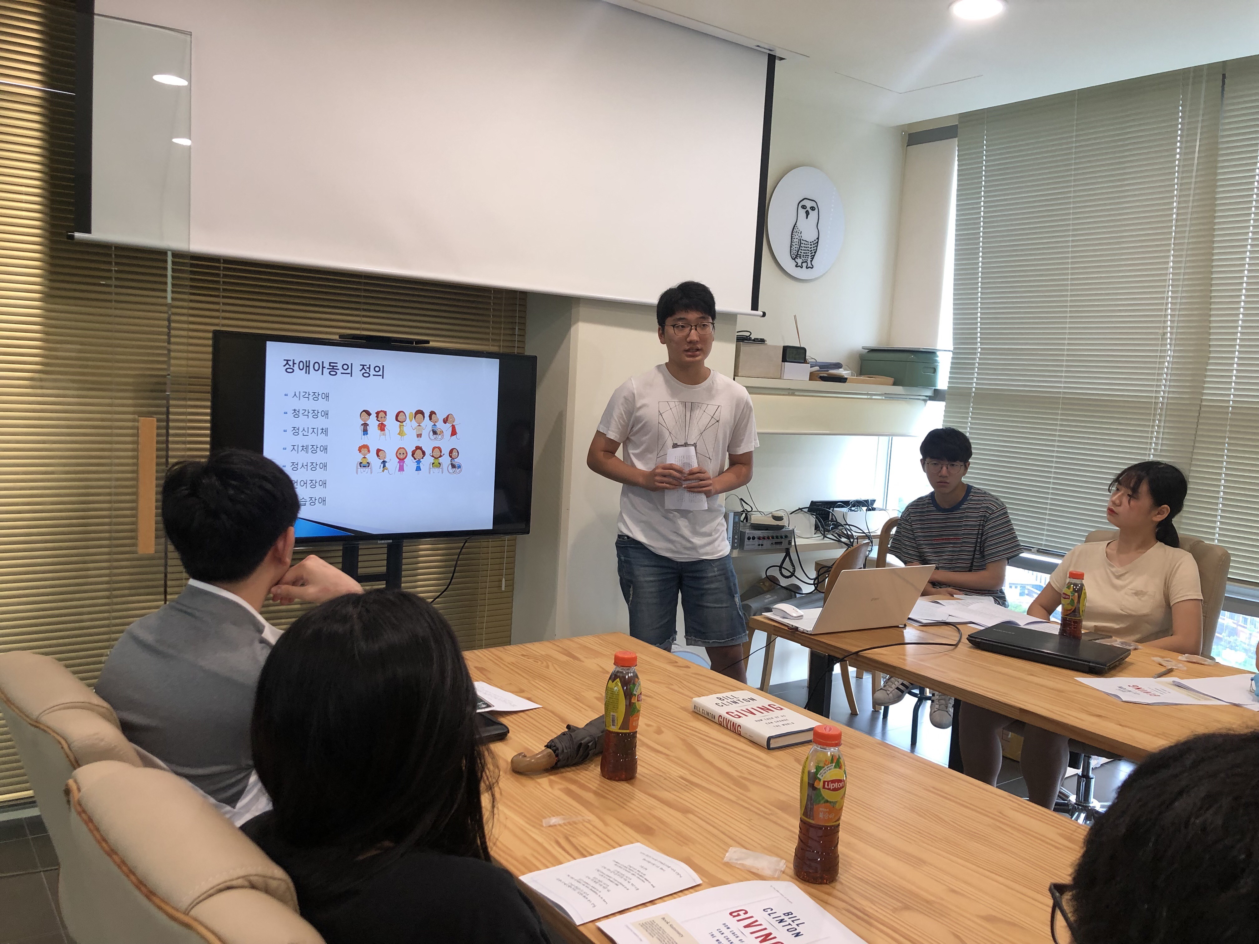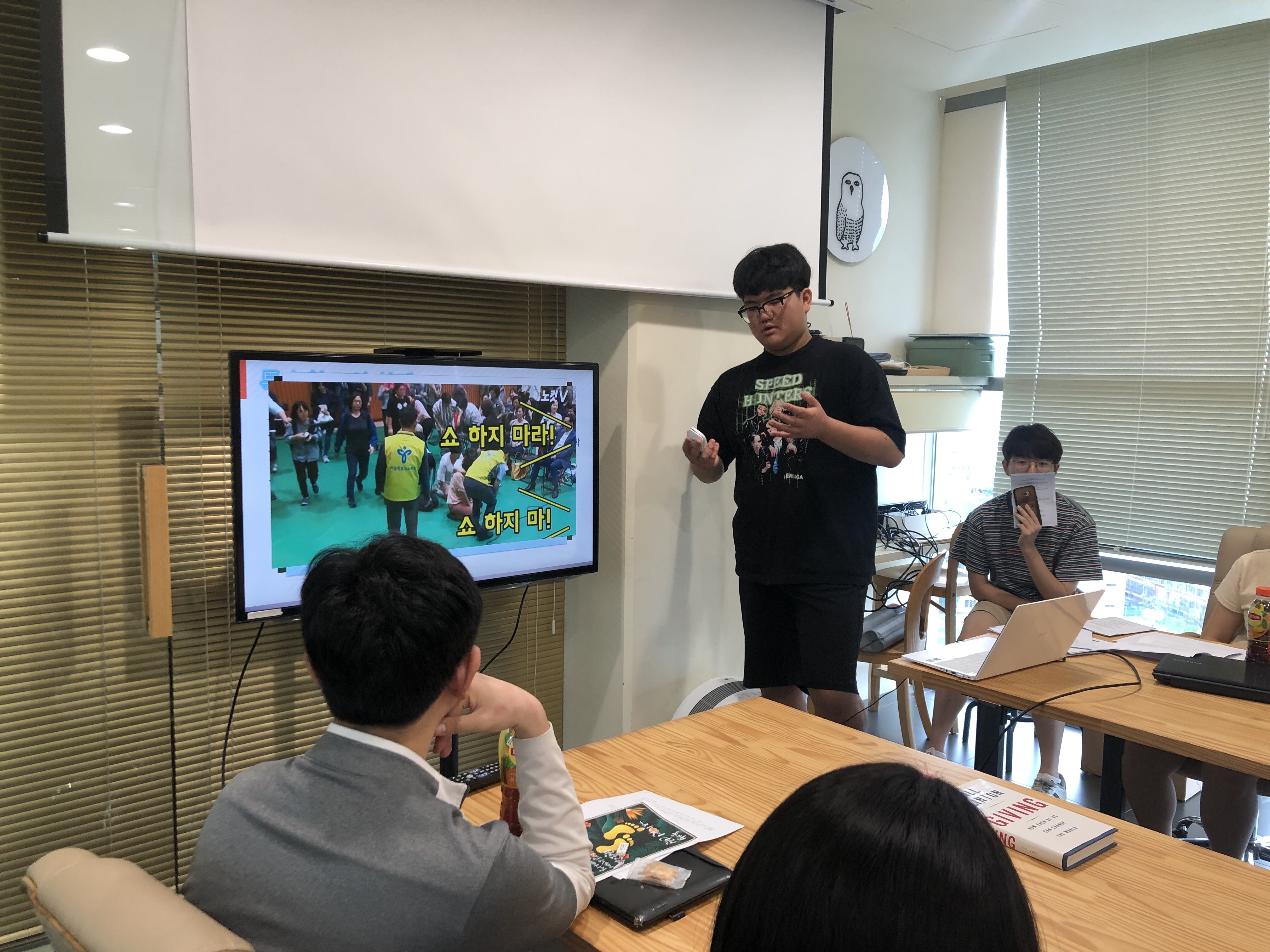 PT 설명 중인 예진 단원과 집중하고 있는 KCOC 봉사사업팀