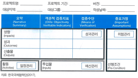 - 프로젝트의 영향을 평가하기 위한 도구(영향, 성과 등 상위단계의 목적을 달성했는지 여부)